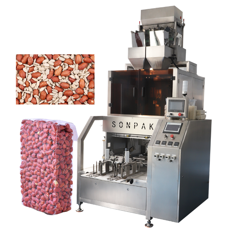 適用于瓜子、花生米等形狀均勻、流動(dòng)性較好的顆粒物料的真空整形包裝。全自動(dòng)化,有效節(jié)約生產(chǎn)成本,能自動(dòng)取袋、送袋、開(kāi)袋、上袋、充填、整形抽真空、封口、成品輸出。