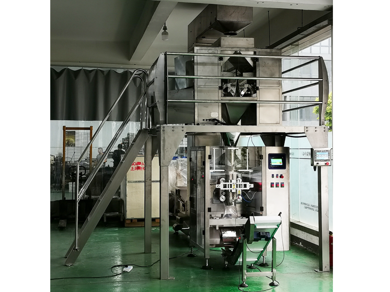 07計量部分有線性秤,下方配有立式制袋機,配合上料機可自動上料、計量、制袋包裝、封口。